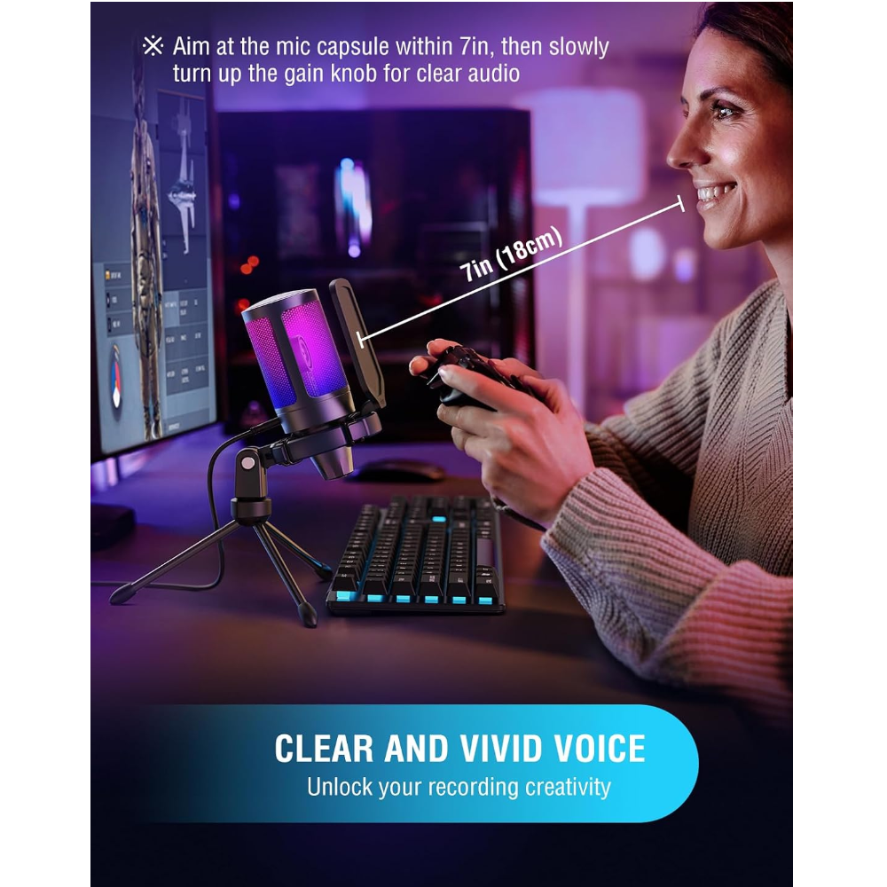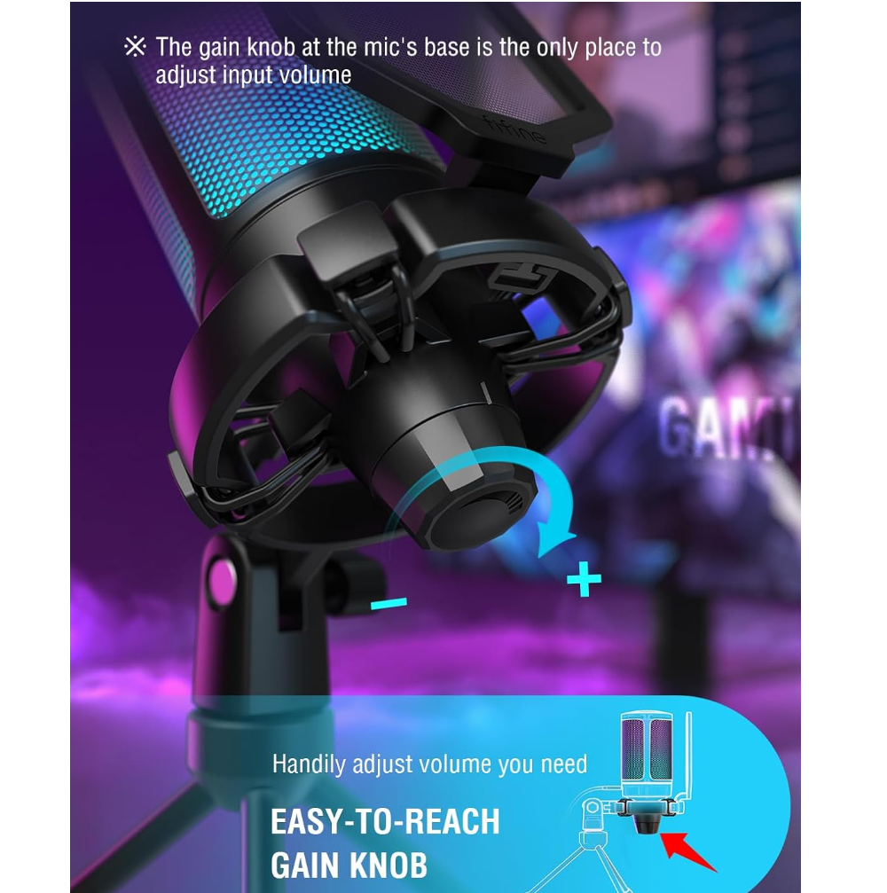 Fifine A6V RGB Condenser Mikrofon Siyah – USB Yayın ve Oyun Mikrofonu