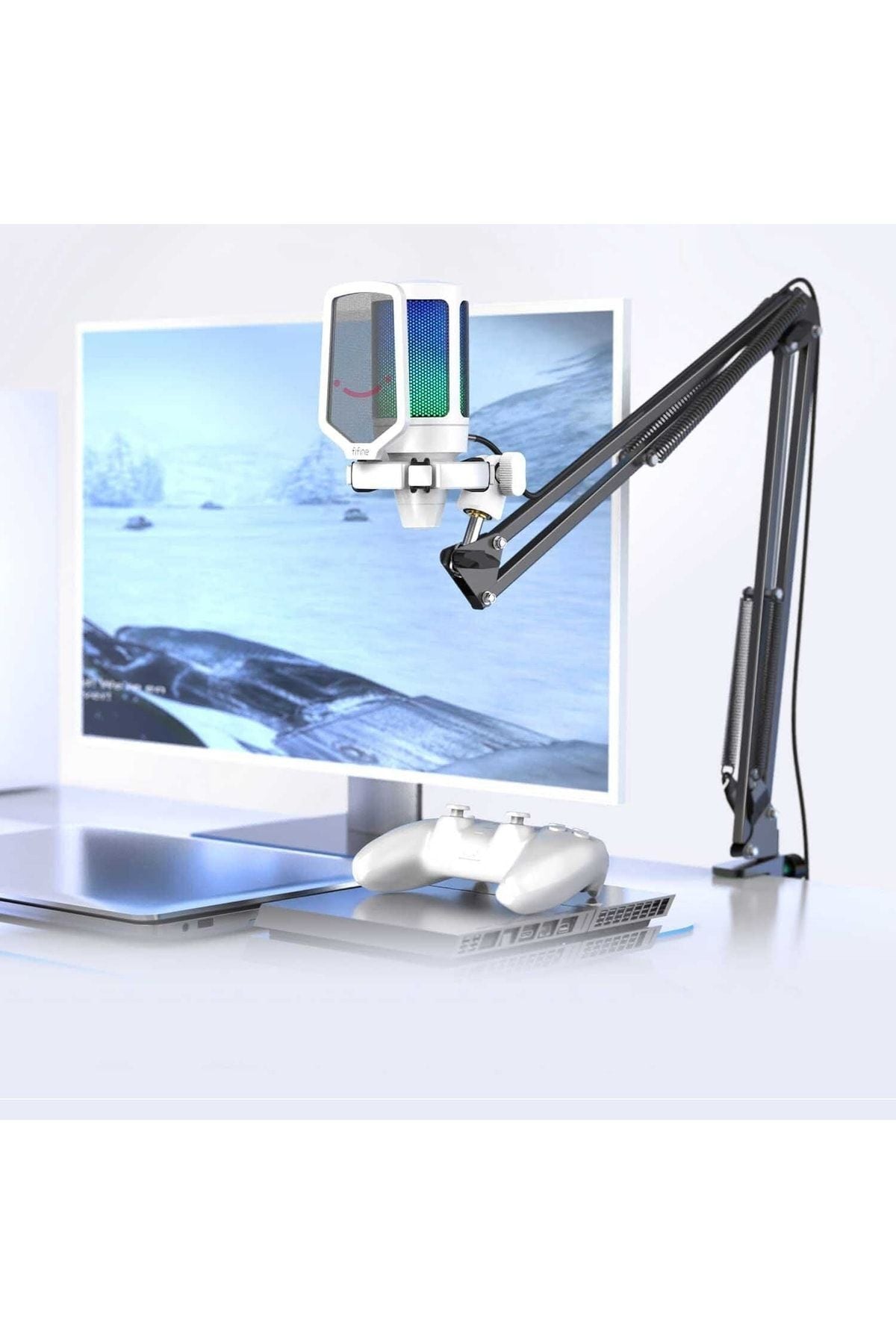 Fifine Ampligame A6T-W Beyaz RGB USB Mikrofon Seti – Yayıncı, Gamer, YouTuber, TikTok İçin Profesyonel Kayıt Mikrofonu