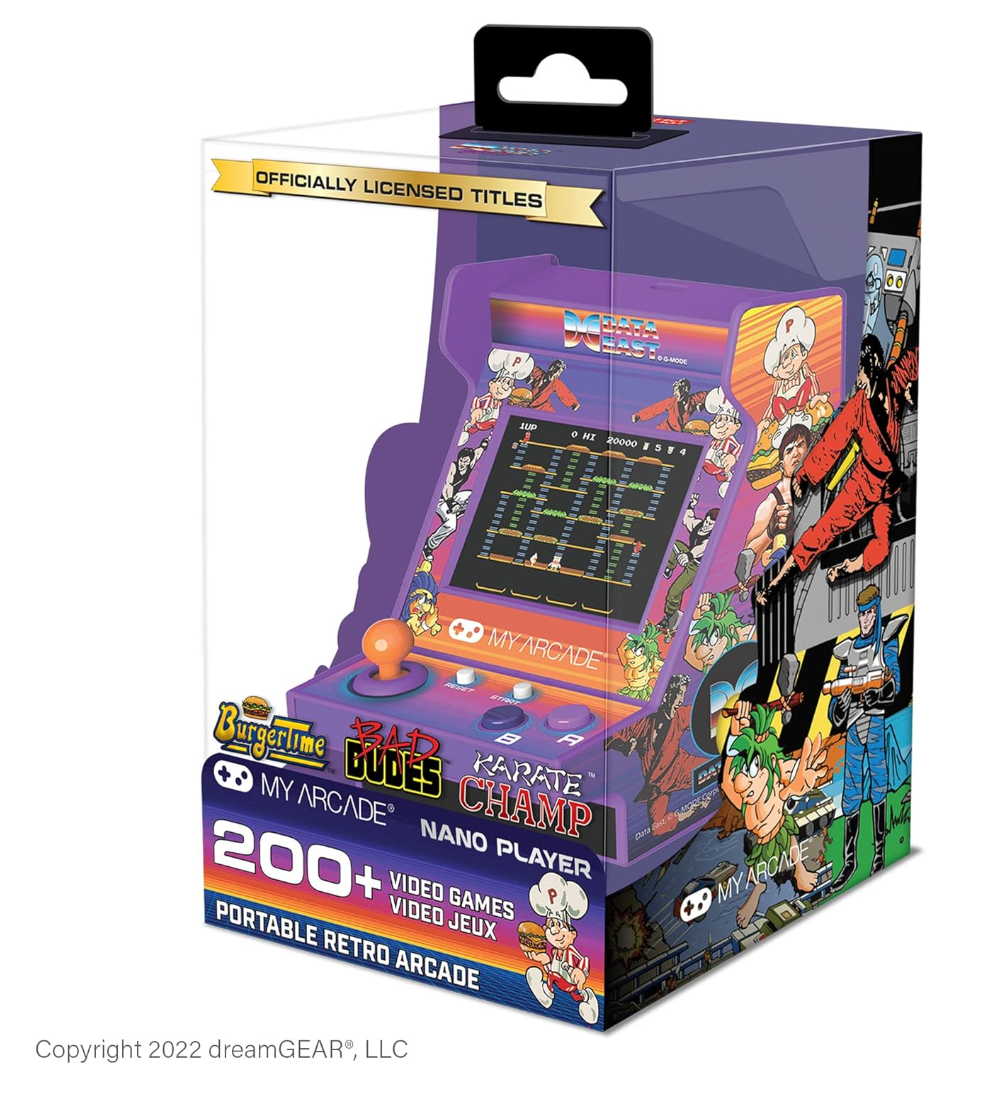 My Arcade 12 Cm Data East Retro Konsol 208 Oyun, 80'lerin ve 90'ların efsanevi Data East arcade oyunlarını kompakt ve taşınabilir bir konsol formatında sunan, nostalji dolu retro oyun deneyimi. 208 klasik oyun ile dolu bu mini konsol, retro oyun severler için mükemmel bir koleksiyon parçası ve eğlence kaynağıdır.
