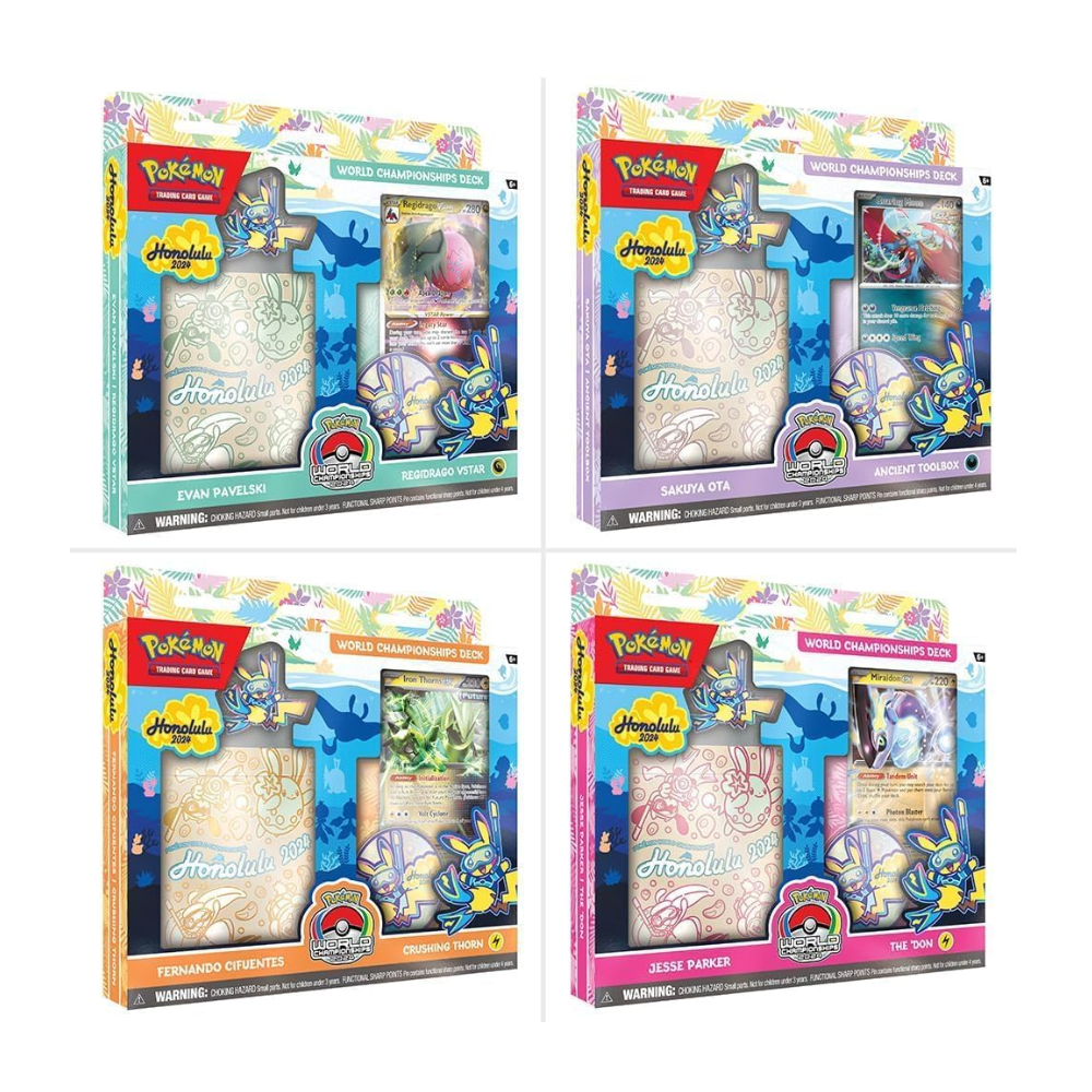Pokémon TCG 2024 World Championships Deck seti, bu yılın Dünya Şampiyonası’nda öne çıkan Evan Pavelski, Sakuya Ota, Jesse Parker ve Fernando Cifuentes tarafından kullanılan orijinal destelerin birebir kopyalarını içerir.